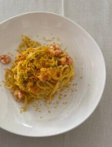 “Antipasto misto, spaghetti alle vongole e bottarga, fritto di paranza: consigliabile questo percorso, oltre ai piatti del giorno, nell’osteria vicino al porto. Il pesce è tutto locale, fornito quotidianamente dalle barche.”